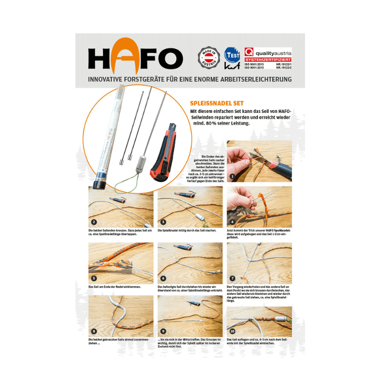 La tua corda PRO-F w-force si è usurata e hai bisogno di un giunto rapido e sicuro? L'Ago Spleissnadel originale HAFO è il kit di ricambio che non può mancare nella tua cassetta degli attrezzi. Progettato specificamente per spleiss (giunzioni) su funi sintetiche HMPE da 4,3 mm, come quelle usate sugli argani ausiliari HAFO Easy, Easy Pro, Goat o Hafner.